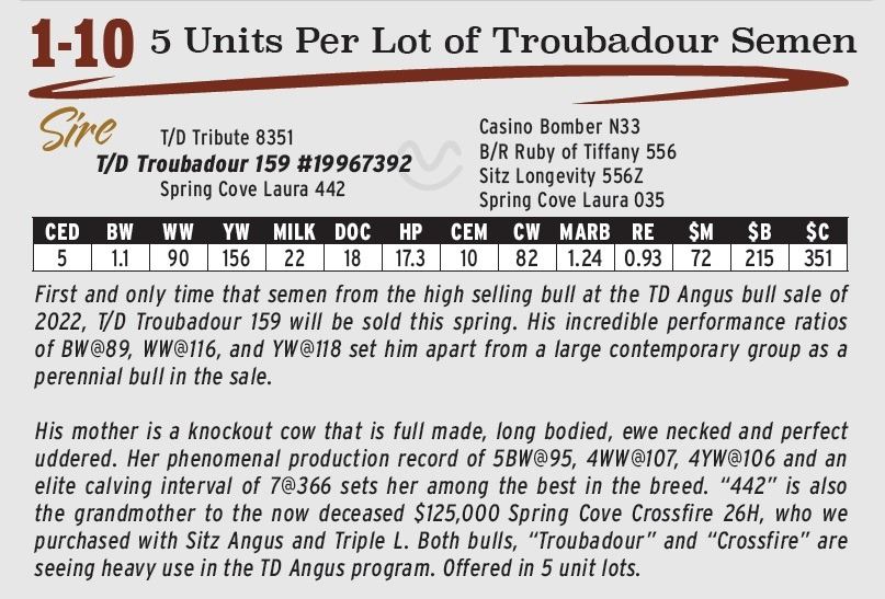 purchased with Sitz Angus and Triple L. Both bulls, “Troubadour” and “Crossfire” are