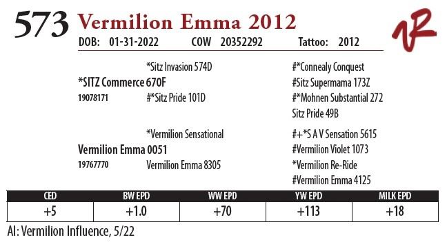 All bulls will be covered 50% by Vermilion Ranch if they are injured during their first breeding season. Breeding season is defined as the 60-day period following the first turnout of bulls.